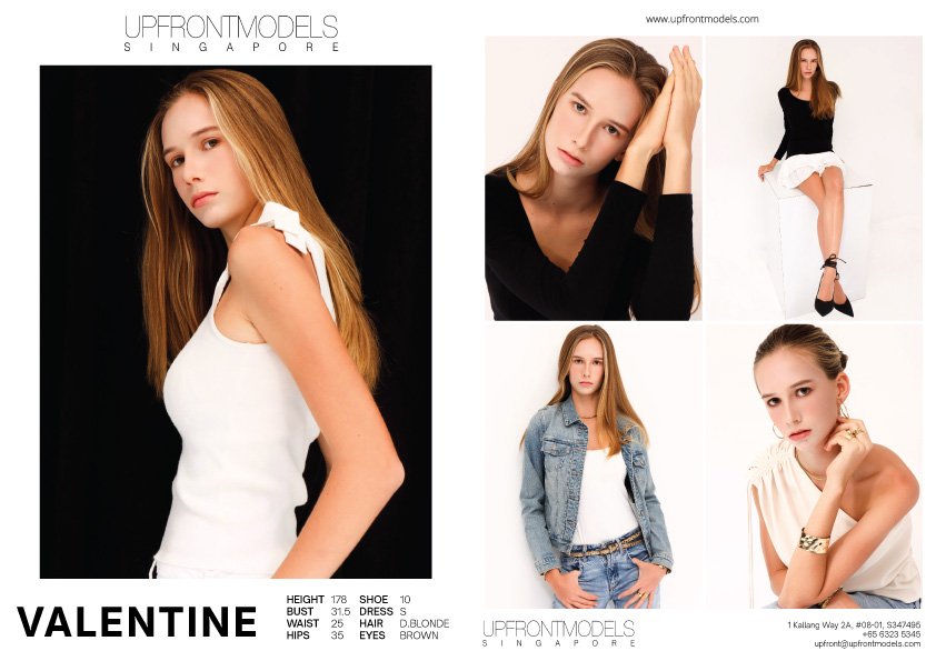Valentine Height 1.78 Bust 31.5 Waist 25 Hips 35 Shoe 10 Dress S Hair D.Blonde Eyes Brown Download pdf Model Package